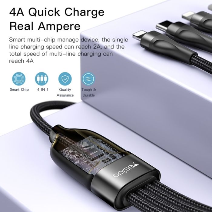 - كيبل شحن 4 في 1 بطول 1.2 متر من Type-C إلى Type-C و Lightning من Yesido