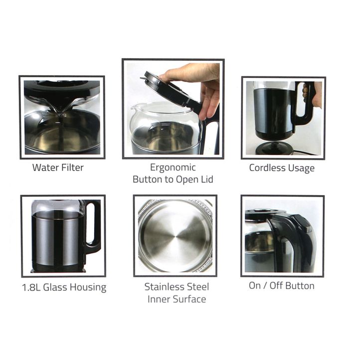 تتميز هذه الغلاية الأنيقة والقوية بسعة 1.8 لتر وعنصر تسخين بقوة 1500 واط، مما يضمن غليانًا سريعًا. سطحها الداخلي المصنوع من الستانلس ستيل وتصميمها اللاسلكي يجعلانها متينة ومريحة. مع ميزة الإيقاف التلقائي وزر مريح لفتح الغطاء، هذه الغلاية مثالية لأي مطبخ.