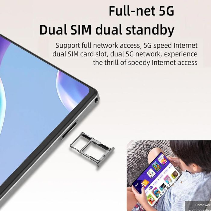 تابلت تعليمي مع فتحة شريحة SIM مزدوجة وواي فاي. يلبي احتياجات طفلك التعليمية ويجذب اهتمامه المبكر بالتكنولوجيا وفهمها، يتميز بنظام التشغيل Android الإصدار 13 مع أيقونات كبيرة واضحة وملونة على شاشة IPS قياس 10.1 بوصة ودعم اللمس من عشر نقاط مما يتيح للمستخدم التنقل بسهولة وبسرعة، معالج ثماني النواة مع 256 جيجابايت سعة التخزين الداخلي وذاكرة 8 جيجابايت