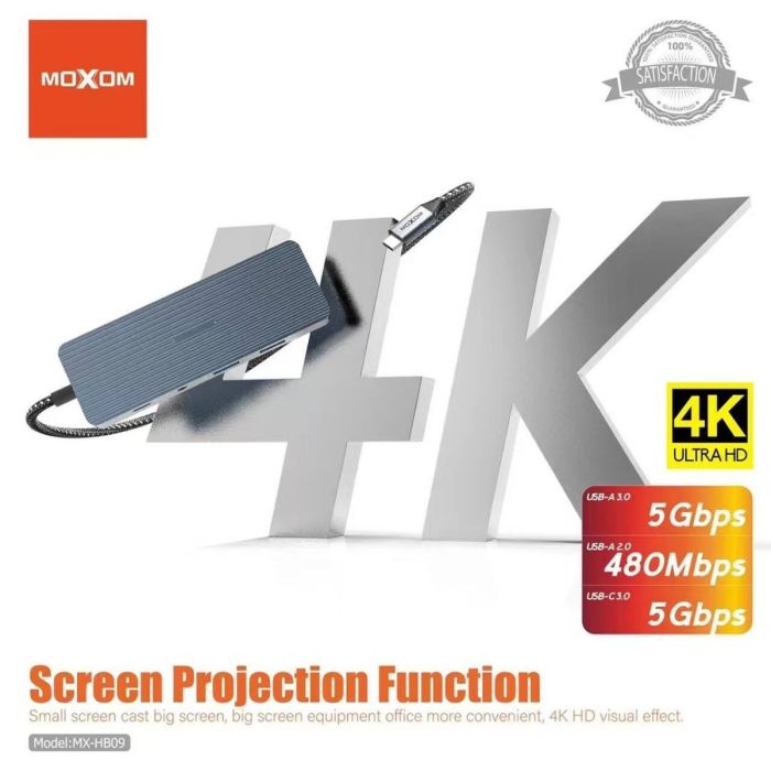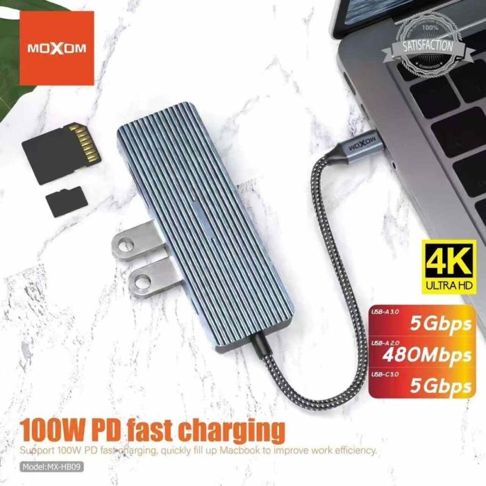 - موزع متعدد المنافذ 10 في 1 لنقل البيانات والشحن السريع 100 واط من Moxom