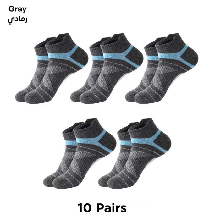 - 10 أزواج جوارب قطنية قصيرة عالية الامتصاص للرجال
