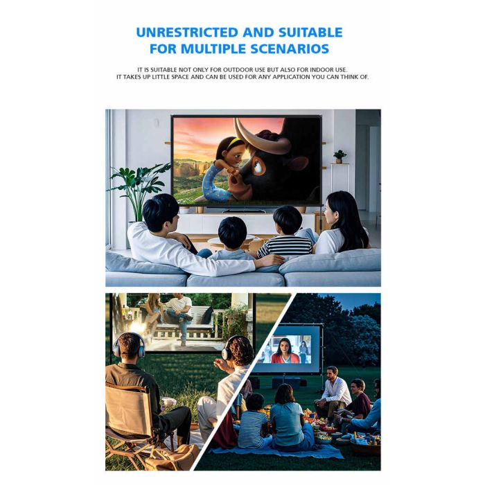 حول أي مساحة إلى مسرح خاص مع شاشة العرض المحمولة هذه المصممة لتوفير جودة صورة استثنائية. سواء كنت تخطط لليلة أفلام في المنزل، أو عرض تقديمي في المكتب، أو أمسية سينما تحت النجوم، فإن هذه الشاشة هي الخيار الأمثل. مصنوعة من قماش بوليستر عالي الكثافة، تمنع تسرب الضوء وتعزز وضوح الألوان، مما يضمن صورًا زاهية ونابضة بالحياة. تصميمها المقاوم للتجاعيد وإطارها المزدوج يضمنان سطح عرض مستويًا وثابتًا، بينما تجعلها قابليتها للطي ووجود حقيبة تخزين خاصة سهلة النقل والتخزين.