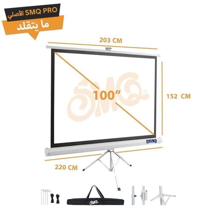 - شاشة عرض SMQ - حامل ثلاثي القوائم - (100 بوصة) 220 سم × 152 سم + حقيبة حمل + مسمار تثبيت أرضي + خطافات + حبال