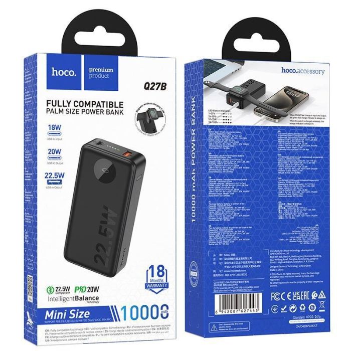 - بطارية احتياطية شحن PD سريع 1000 مل أمبير 22.5 واط مع شاحن ساعة لاسلكي من Hoco