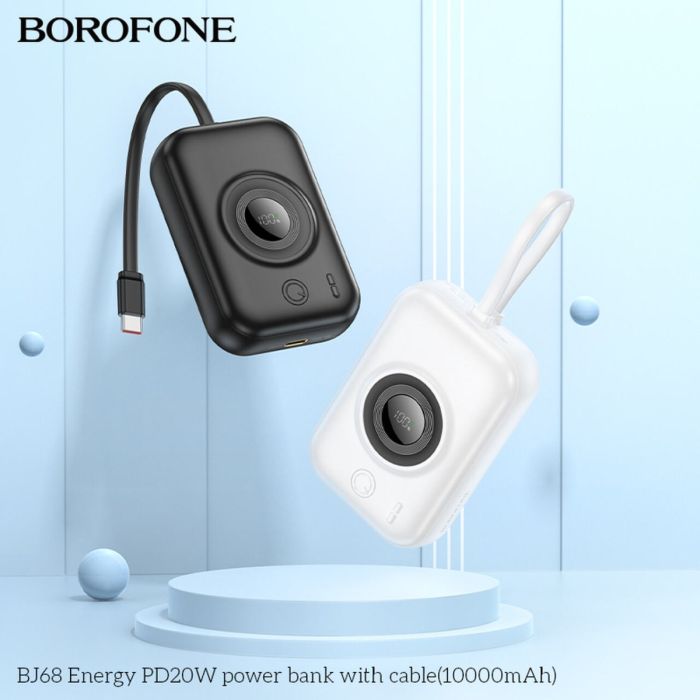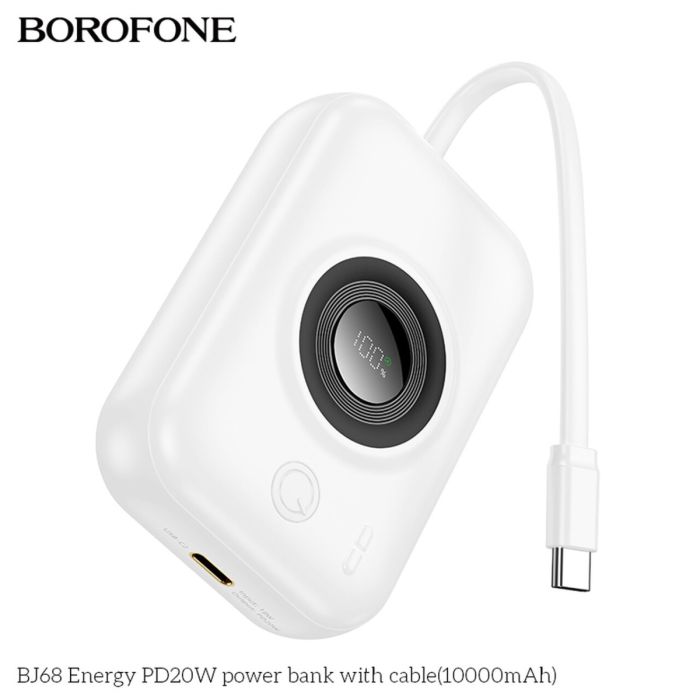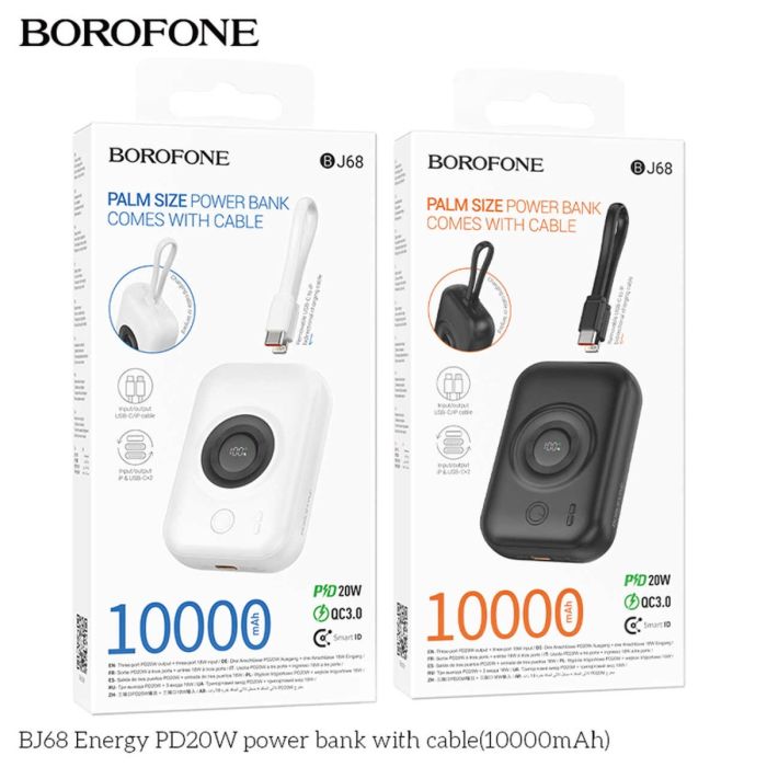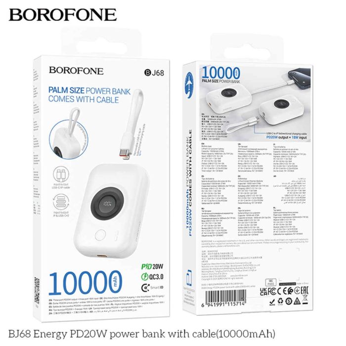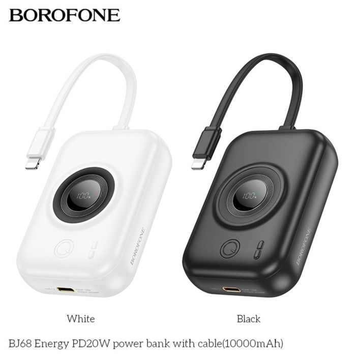 بطارية احتياطية 10000 مل أمبير PD بقوة 20 واط مع منافذ USB-C ثنائية ومنفذ Lightning وكيبل من Borofone