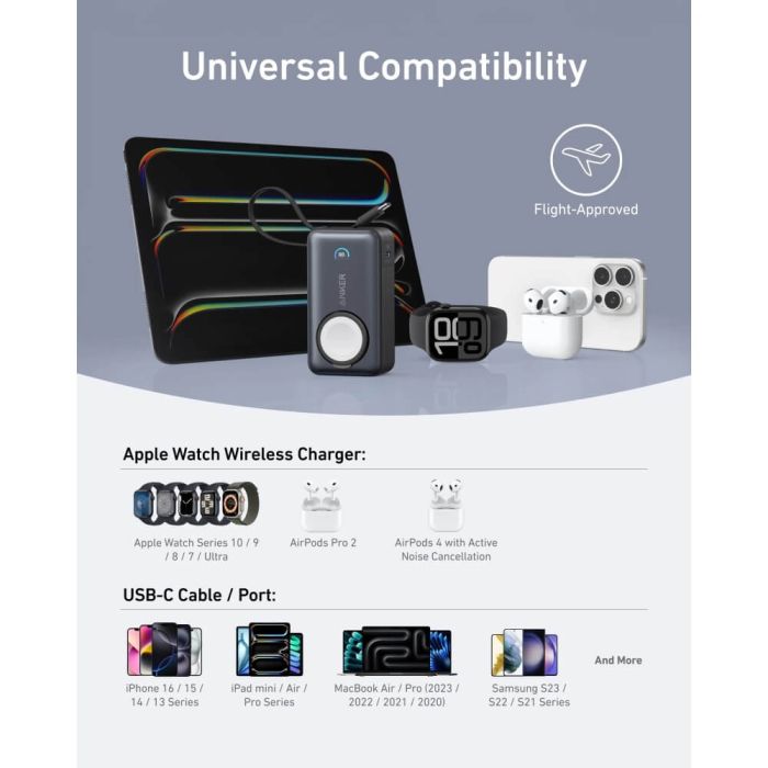 - بطارية احتياطية Anker MagGo سعة 10000 مل أمبير 35 واط متوافقة مع Apple Watch بمنفذ USB-C مدمج