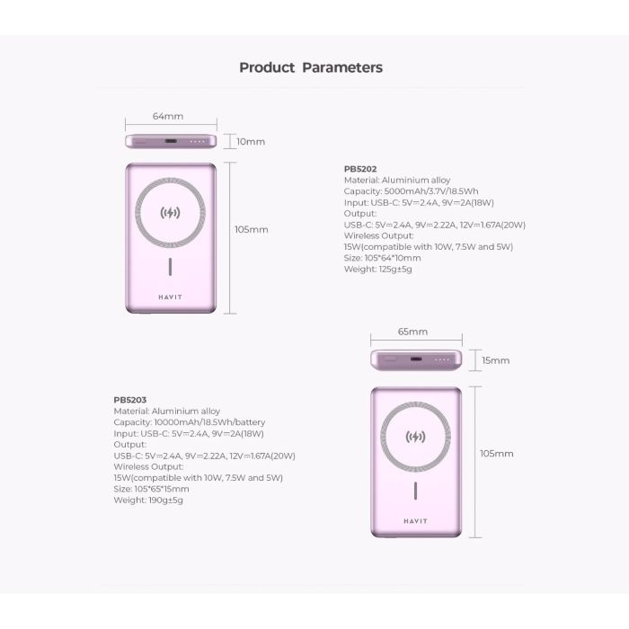 - بطارية احتياطية مع شاحن لاسلكي MagSafe سعة 10000 مللي أمبير من Havit