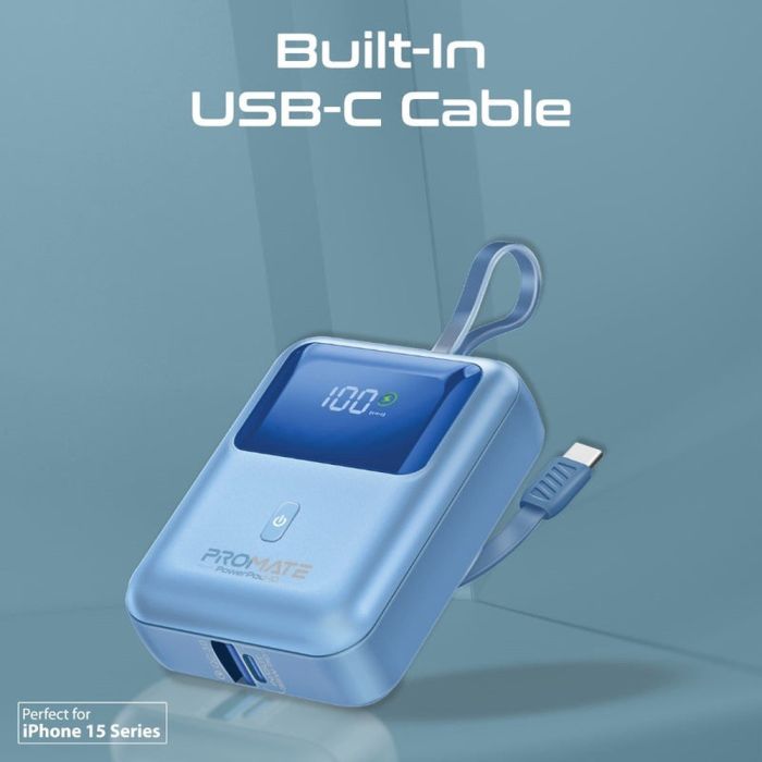 - بطارية احتياطية 10000 مل أمبير 35 واط مع كيبل USB-C مدمج من Promate