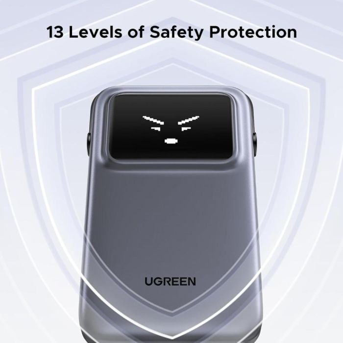 احصل على الطاقة التي تحتاجها في أي وقت مع البطارية الاحتياطية UGREEN Uno بسعة 10000 مل أمبير وشحن سريع بقوة 30 واط. مزودة بشاشة TFT رقمية لعرض مستوى الشحن، وكيبل Type-C مدمج بطول 50 سم، مع إمكانية شحن 3 أجهزة في وقت واحد. تصميمها النحيف والخفيف يجعلها مثالية للنقل، مع حماية متقدمة ضد الحرارة والجهد الزائد لضمان شحن آمن وفعال