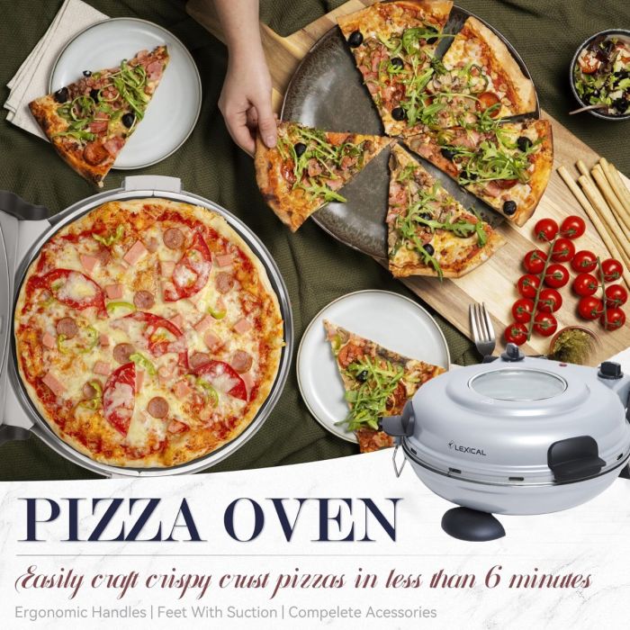 - 1000 واط صانعة بيتزا وخبز مع صينية قابلة للإزالة مقاس 32 سم من Lexical