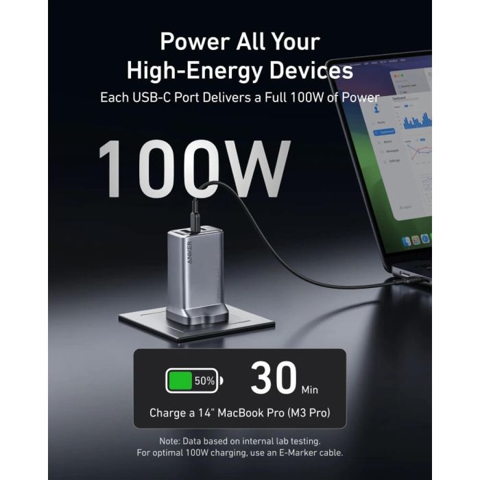 - شاحن Prime بقوة 100 واط 3 منافذ بتقنية GaN من Anker
