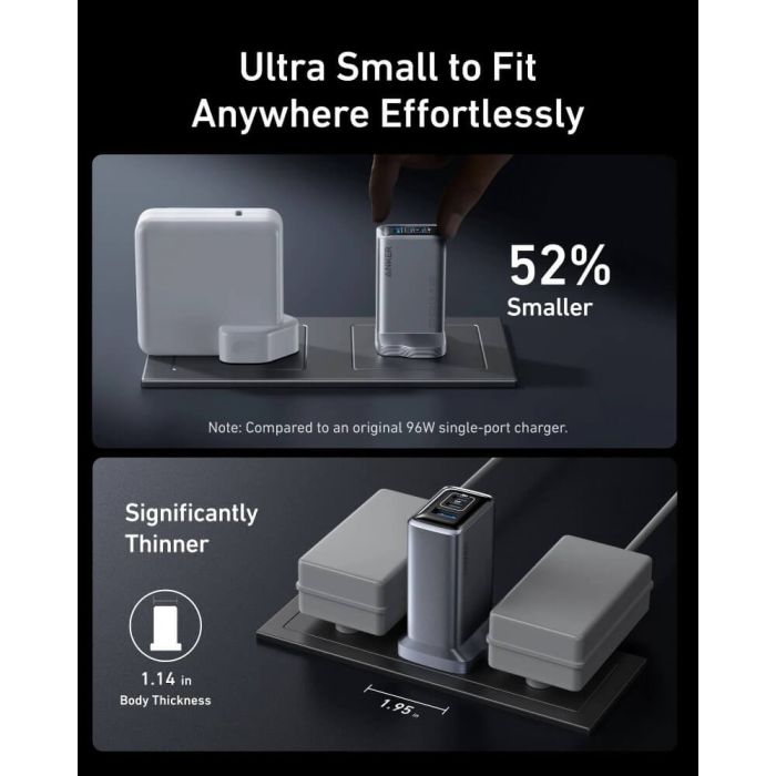 - تقنية GaN لضمان كفاءة عالية وحجم أصغر وتوليد حرارة أقل