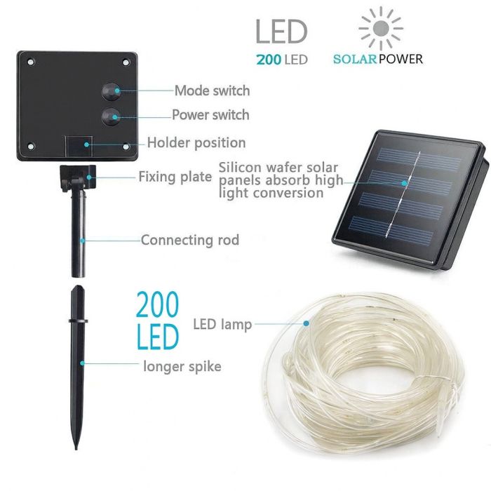 - حبل إضاءة LED يعمل بالطاقة الشمسية 10 متر