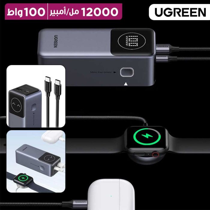 بطارية احتياطية 12000 مل أمبير شحن PD سريع 100 واط مع منفذ USB-C و USB-A من UGreen