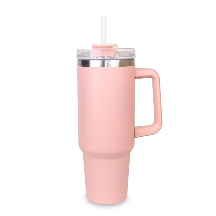 كوب تامبلر كبير مع مقبض وشفاطة من الستانلس ستيل سعة 1200 مل