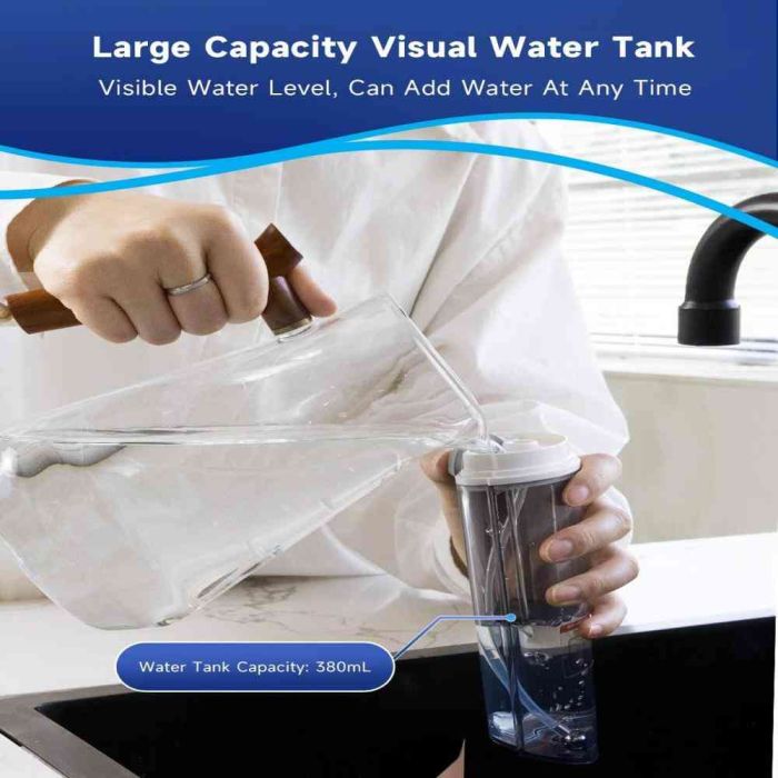 - سعة خزان المياه: 380 مل مع مستوى مياه مرئي وإمكانية إعادة التعبئة في أي وقت