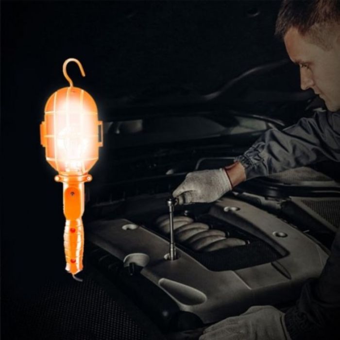 لمبة فحص سيارة 12 فولت مع علاقة تعليق مصنوعة من هيكل متين، توفر إضاءة قوية وواضحة، تعمل مباشرة على بطارية السيارة، مناسبة لأعمال الصيانة والفحص، تصميم عملي سهل الاستخدام مع سلك طويل للوصول المرن