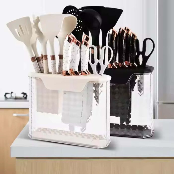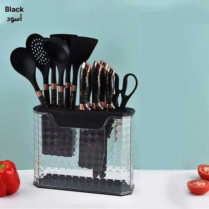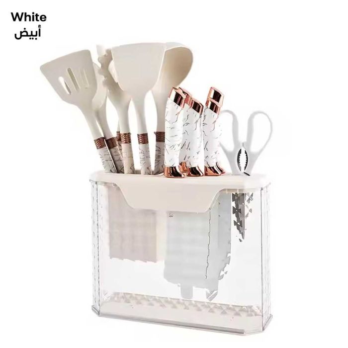 - طقم أدوات مطبخ سيليكون مع سكاكين ومنظم 13 قطعة