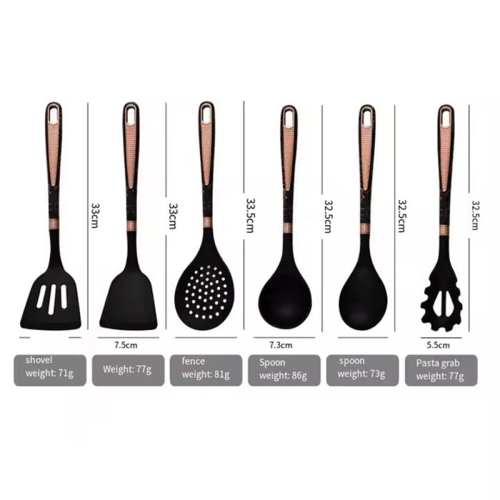 أضف تصميمًا متطورًا إلى حياتك مع أدوات المطبخ المريحة والأنيقة. مجموعة أدوات الطهي هذه مصنوعة من السيليكون الآمن غذائيًا وخالية من مادة BPA. لن تتفاعل مع الطعام أو المشروبات وتتضمن كل ما تحتاجه لطهي وجباتك المفضلة، ومقاومة للحرارة حتى 230 درجة مئوية وآمنة للاستخدام مع أواني الطهي غير اللاصقة.