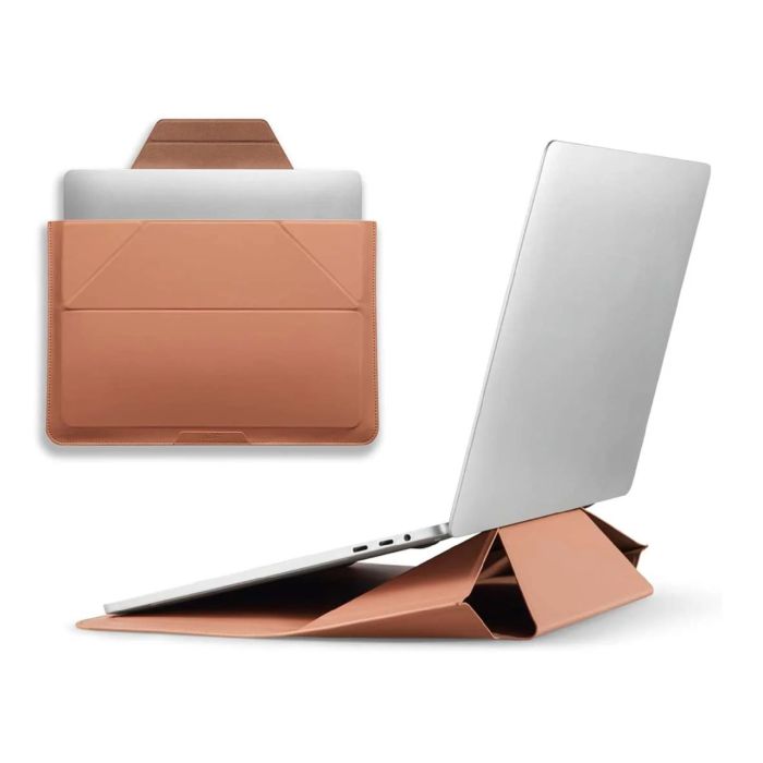 ملحق متعدد الاستخدامات وأنيق مصمم لأجهزة MacBook Air مقاس 13.3 بوصة وأجهزة الكمبيوتر المحمولة مقاس 14 بوصة. مصنوعة من مادة PU الصديقة للبيئة ومعززة بالألياف الزجاجية، توفر هذه الحقيبة المتانة والإحساس الفاخر. تعمل هذه الحقيبة بتصميم 3 في 1 كغطاء واقٍ، وستاند مريح بزوايا مزدوجة (15° و25°)، وتتميز بتخزين قابل للتوسيع لملحقات مثل الشواحن والمفكرات. يُعد تصميمها النحيف وقدرتها على التحول السريع إلى ستاند مثاليًا للمحترفين أثناء التنقل.