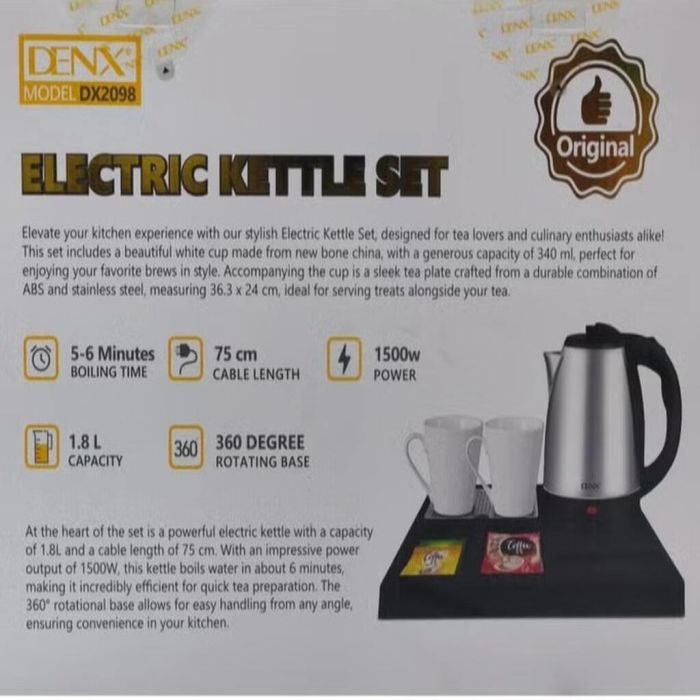 موطن الضيافة لمحبي الشاي والقهوة. تم تصميم هذا الطقم بطريقة أنيقة ومعاصرة، تجمع بين التصميم الحديث والكفاءة والأداء وتوفر طريقة مريحة وأنيقة لغلي الماء، حيث تضمن الغلاية ذات الجدار المزدوج الاحتفاظ بالحرارة، فهي مصنوعة من الستانلس ستيل للحفاظ على الماء ساخناً لفترة أطول. بسعة مثالية تبلغ 1.8 لتر لغلي الماء وتقديم المشروبات، مزودة بصينية من مادة ABS توفر قاعدة مستقرة وأنيقة للغلاية، وتحتوي الصينية على مساحة مخصصة لوضع السكر مع 2 زجاجة ماء، كما يحتوي الطقم أيضاً على 2 كوب من السيراميك مطابقة لشكل الغلاية للحصول على مظهر رائع والاستمتاع بالشاي، القهوة، الشوكولاتة الساخنة، أو المشروبات الأخرى