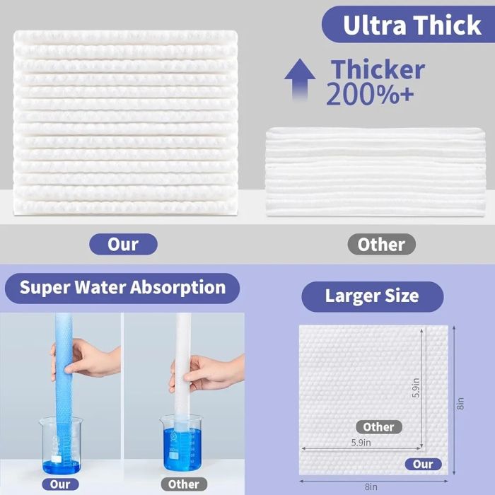 ودّع مناشف الوجه غير الصحية وامنح بشرتك لمسة نقاء طبيعية مع مناديل الوجه السميكة المصنوعة من الألياف النباتية النقية. استمتع بتجفيف ناعم وفعال لبشرتك الحساسة، واحمِ وجهك من البكتيريا والجراثيم لتبدأ كل يوم ببشرة منتعشة وصحية. مناديل متعددة الاستخدامات لتلبية جميع احتياجات العناية اليومية.