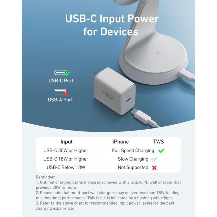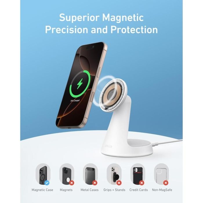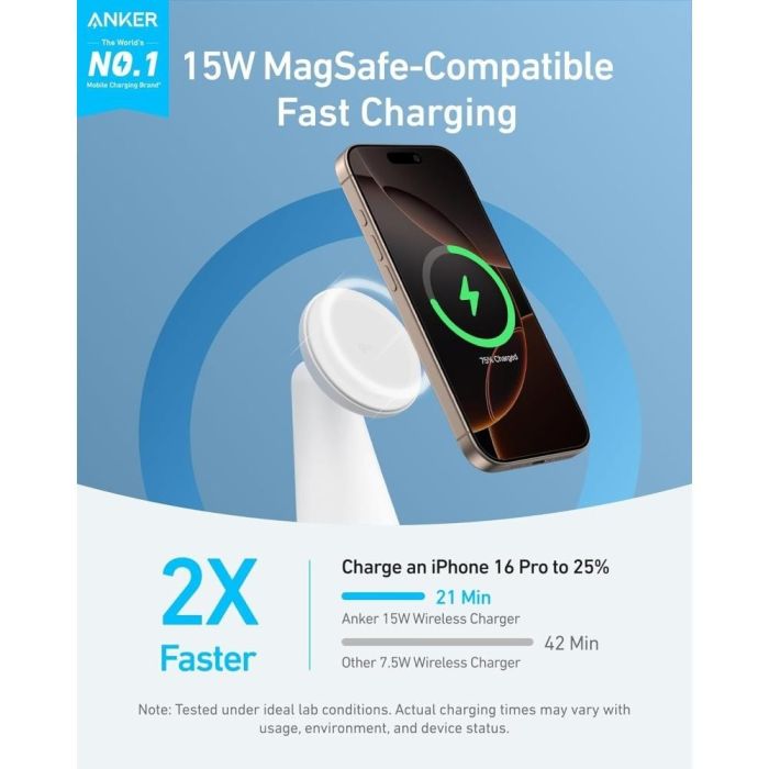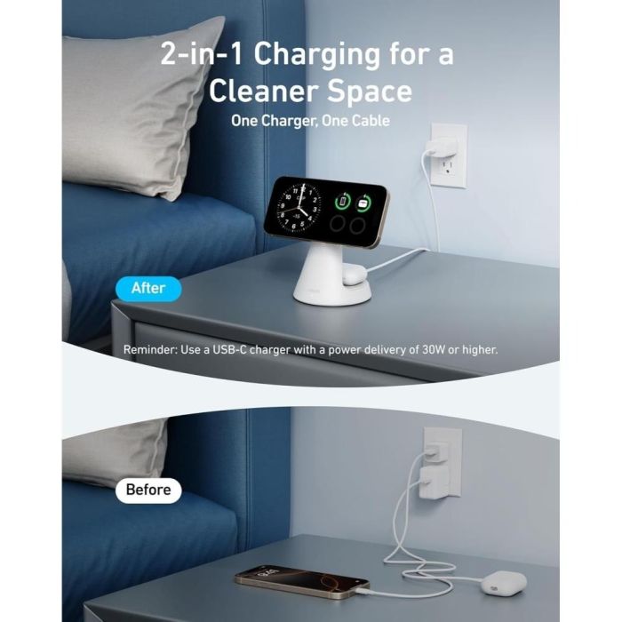 - شاحن MagSafe لاسلكي 2 في 1 بقوة 15 واط للهاتف والسماعة الذكية من Anker