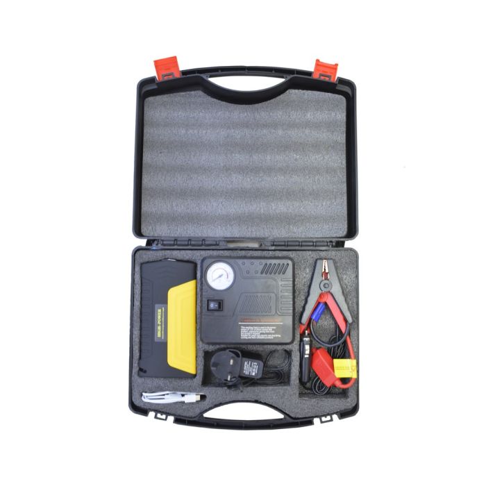 كن مستعدًا لأي شيء الطريق! هذا الجهاز متعدد الاستخدامات لتشغيل سيارتك وضاغط الهواء، بقوة 16800 مللي أمبير/ساعة، يكفي لتشغيل سيارتك، ونفخ إطاراتها، وشحن أجهزتك. صغير الحجم، محمول، ومصمم لحالات الطوارئ - رفيقك الأمثل على الطريق.