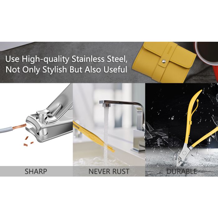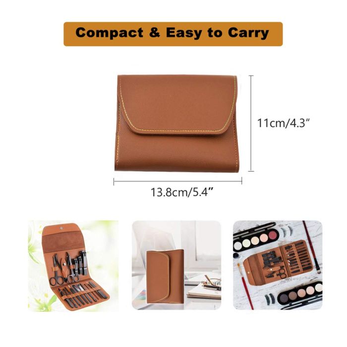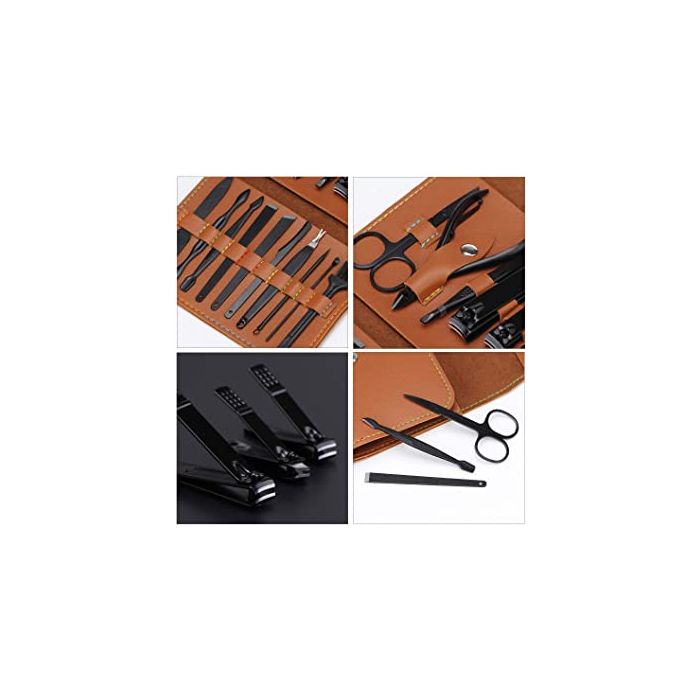 يحتوي طقم ادوات قص وتقليم الاظافر كل ما تحتاجه للعناية باليدين والقدم والوجه. مصنوعة من الستانلس عالي الجودة ، هذه الأدوات متينة للغاية ومقاومة للصدأ.