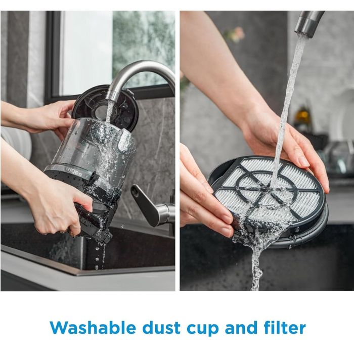 تأتي هذه المكنسة الكهربائية مع أداة شقوق مدمجة للراحة وتنظف شعر الحيوانات الأليفة والغبار بفعالية من الأسطح المختلفة. توفر العجلات الدوارة الكبيرة ثباتًا أفضل وتمنع العوائق، مما يضمن التشغيل السلس في جميع أنحاء منزلك.