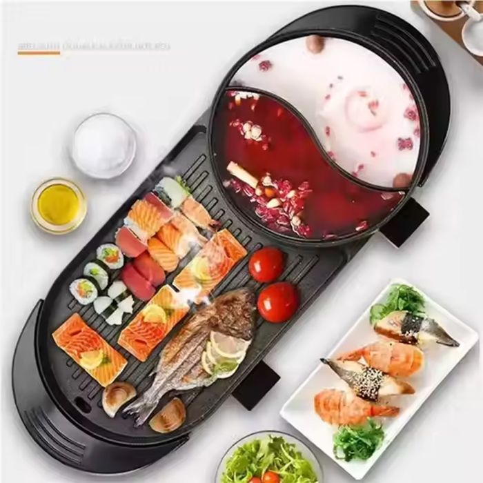شواية راف 2 في 1 الكهربائية مع قدر ساخن هي أداة أساسية في المطبخ، مصممة لتعدد الاستخدامات والراحة. بفضل عنصر التسخين القوي بقوة 1800 واط، تتيح لك هذه الشواية ثنائية القدر الشواء والطهي في آن واحد، مما يجعل تحضير الوجبات سريعًا وفعالًا. تضمن الطبقة غير اللاصقة سهولة التنظيف، بينما يمنحك التحكم في درجة الحرارة القابلة للتعديل نتائج طهي دقيقة. سواء كنت تشوي اللحوم أو تحضر الحساء على نار هادئة، فإن هذه الشواية تُلبي جميع احتياجاتك، دون دخان. مثالي للمطابخ المنزلية، تصميمه العصري ومقابضه الباردة تجعله آمنًا وأنيقًا في آنٍ واحد.