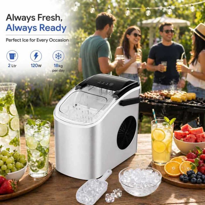 ينتج هذا الجهاز ثلجاً طازجاً ونظيفاً في 6 دقائق فقط بدون متاعب. بسعة 2 لتر وإنتاجية 18 كيلو يومياً وتشغيل ذكي، توفر ثلج مستمر لحفلاتك والمشروبات الباردة طوال اليوم