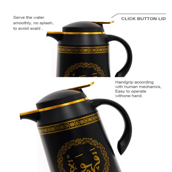 استمتع بمذاق الشاي والقهوة في أي وقت، مطارة عازلة للحرارة تحافظ على المشروبات ساخنة أو باردة لساعات. تتميز بغطاء محكم وفتحة علوية واسعة لسهولة الاستخدام والتنظيف، بينما يضمن المقبض المريح سهولة الحمل والصب
