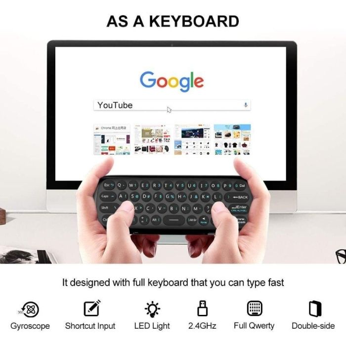 احصل على تجربة تحكم سلسة مع الماوس الهوائي اللاسلكي W1 من We chip، الذي يجمع بين الكيبورد المصغر والماوس في جهاز واحد. يتيح لك التحكم الكامل بالتلفاز الذكي أو جهاز Android Box بسهولة تامة، ويتميز بسرعة الاستجابة والاتصال اللاسلكي القوي لتجربة ترفيه لا مثيل لها.