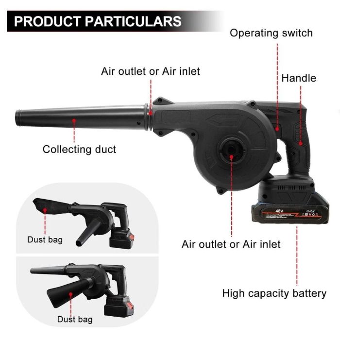 منفاخ هواء ومكنسة قابلة للشحن 48 فولت 2 في 1