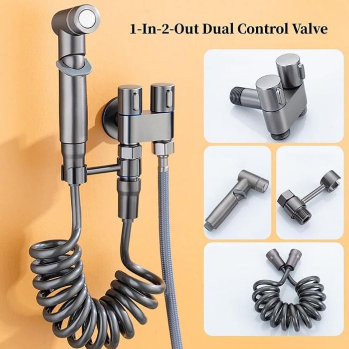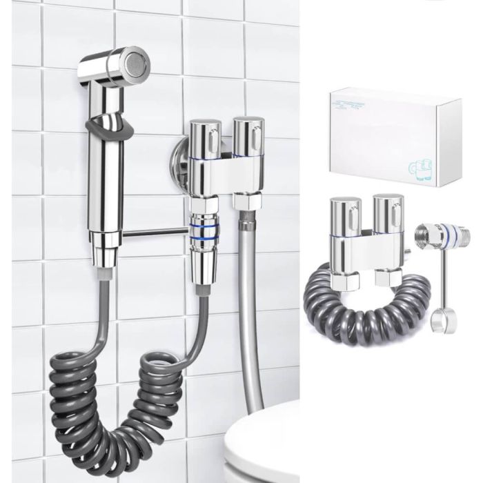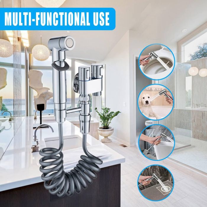 شطاف صحي شائع الاستخدام في الحمامات التي لا تحتوي على شطاف خاص. سهل الفك والتركيب مع قاعدة تثبيت للشطاف