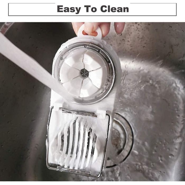 - مصمم بـ 8 أسلاك قطع من الفولاذ المقاوم للصدأ، يقطع بسهولة 9 شرائح في المرة الواحدة، كلها متساوية في الحجم، لتقديم جيد وطهي متساوي