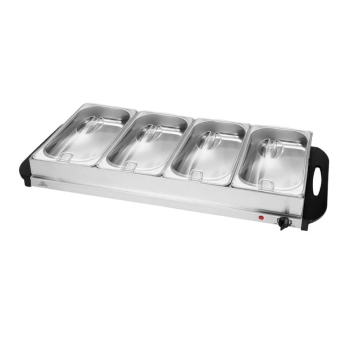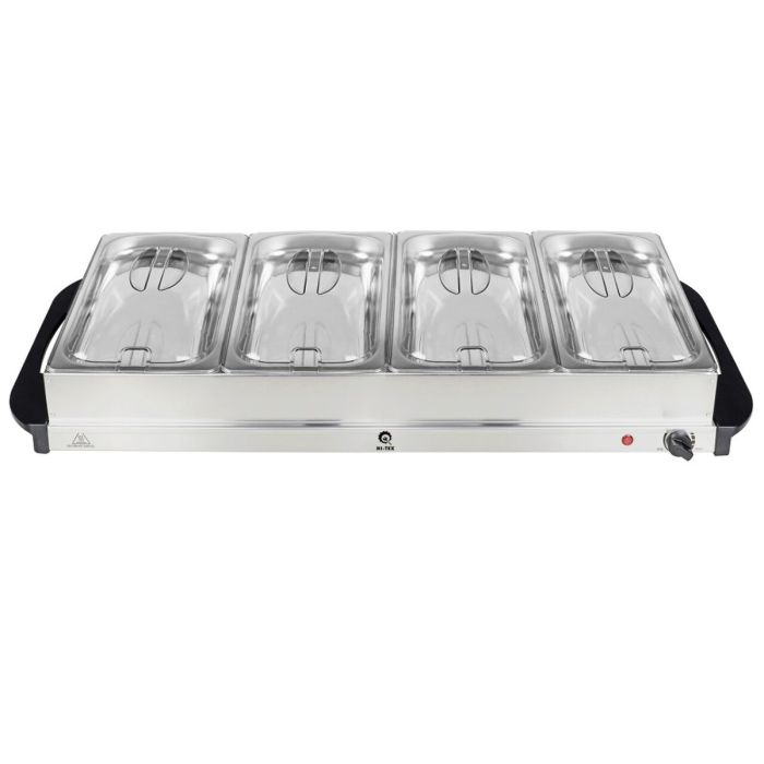 كل صينية معها غطاء لعرض أكثر تنظيمًا واحتفاظ أفضل بالحرارة، ويمكن استخدام الجهاز أيضًا كصفيحة تسخين لمرونة إضافية على السفرة أو سطح المطبخ. التحكم في الحرارة القابل للتعديل مع لمبة بيان التشغيل يجعل ضبط الحرارة لأنواع الطعام المختلفة سهلًا، بينما هيكل الستانلس ستيل يمنح متانة أعلى وسهولة في التنظيف والعناية.