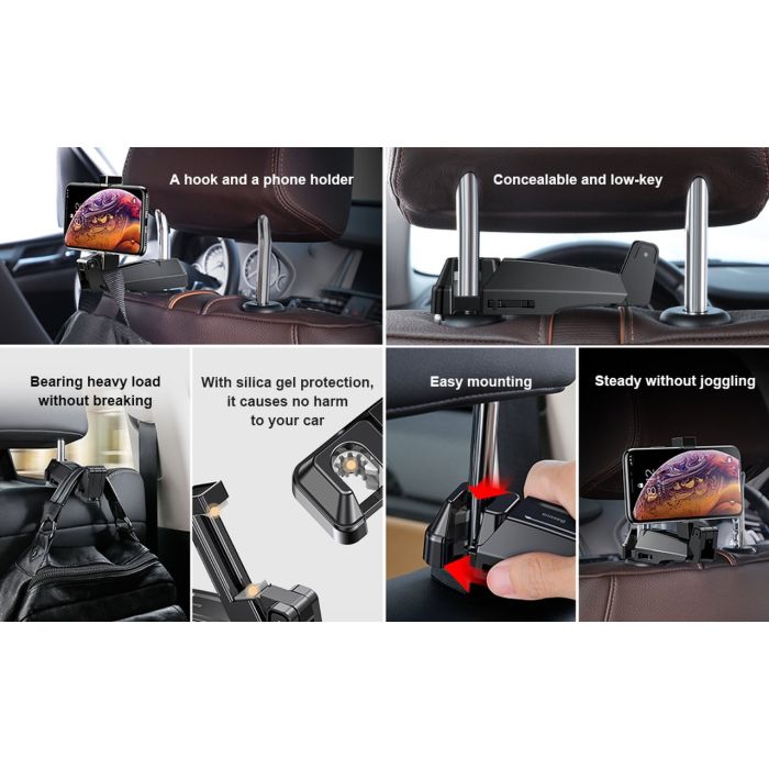 - قاعدة جوالات متعدد الاستخدامات خلف مقعد السيارة من Baseus