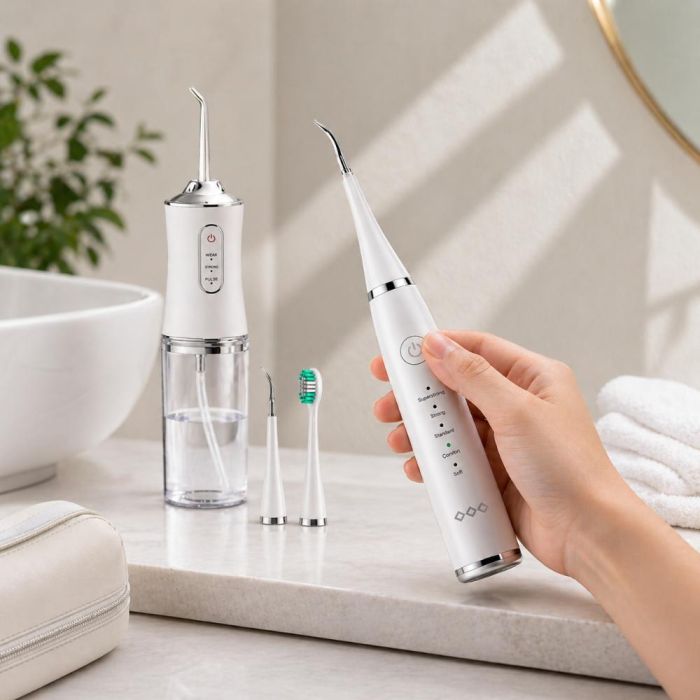 احصل على الرعاية الفائقة بالفم مع هذه المجموعة الاحترافية، حيث تجمع بين جهاز تنظيف الأسنان بضغط الماء و منظف الأسنان المتطور عالي الأداء. توفر هذه المجموعة تنظيفًا عميقًا ودقيقًا لإزالة البلاك من بين الأسنان باستخدام 5 أوضاع تشغيل مخصصة، مما يضمن لك حماية كاملة للثة وابتسامة بيضاء ناصعة بأقل جهد