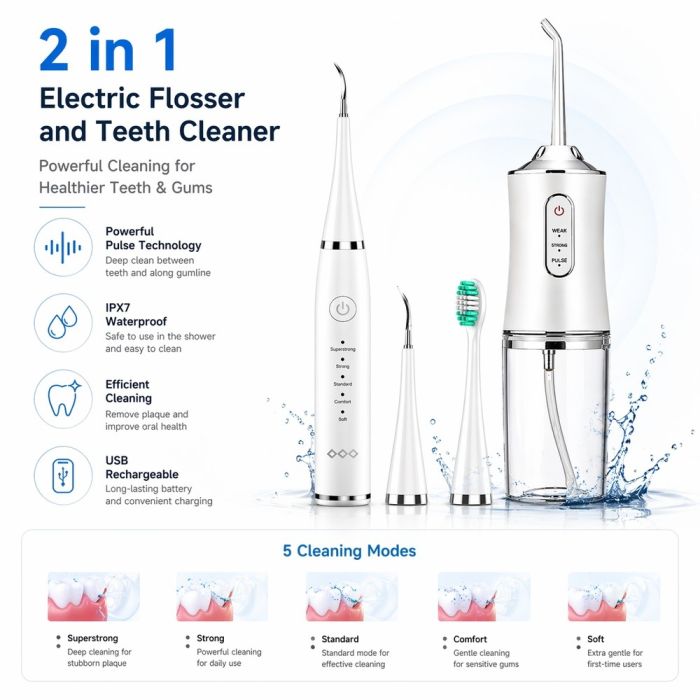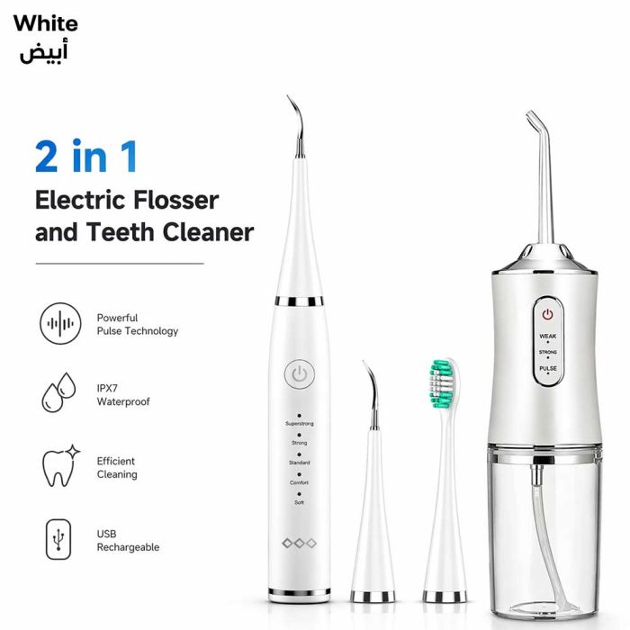 منظف أسنان كهربائي وجهاز تنظيف بضغط الماء 2 في 1
