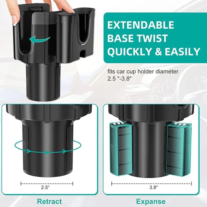 - قاعدة أكواب السيارة قابلة للتوسيع وقاعدة هاتف 2 في 1 - 10.5x17 سم