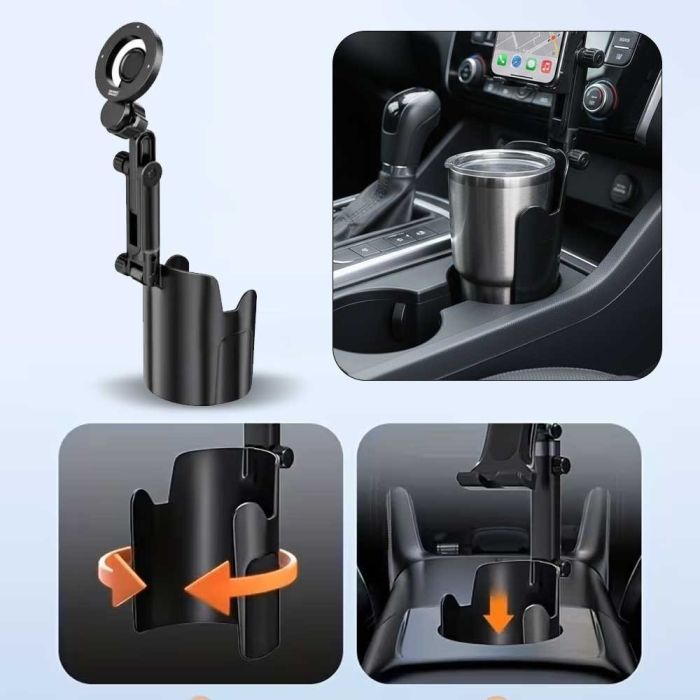 - ستاند هاتف مغناطيسي مع قاعدة أكواب للسيارة 2 في 1