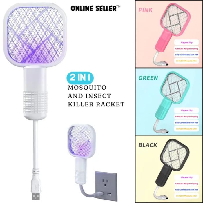 قل وداعا للبعوض المزعج مع مصباح البعوض 2 في 1. يعمل هذا الجهاز المبتكر كمضرب لقتل البعوض ومصباح بضوء LED. يمكن إعادة شحنه عبر USB للراحة ويأتي مع قاعدة شحن للتخزين والشحن بسهولة