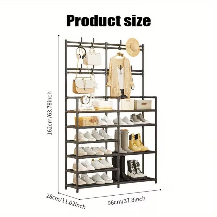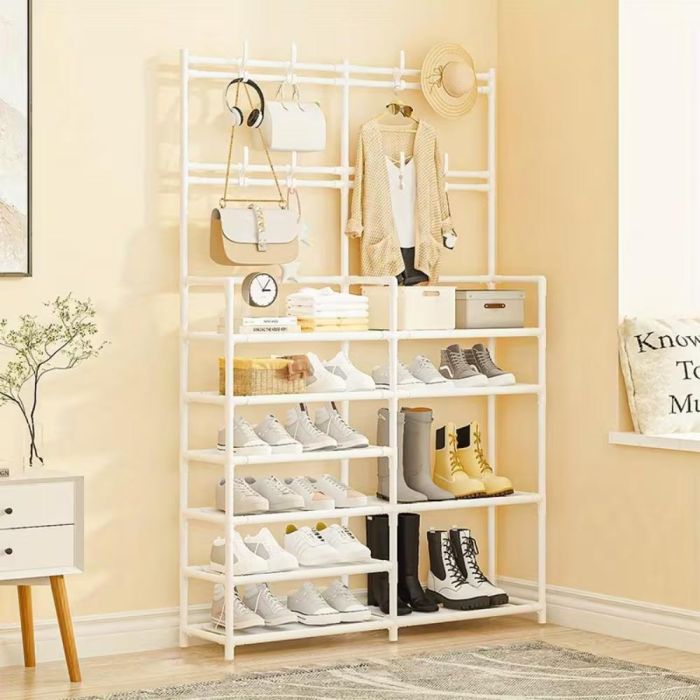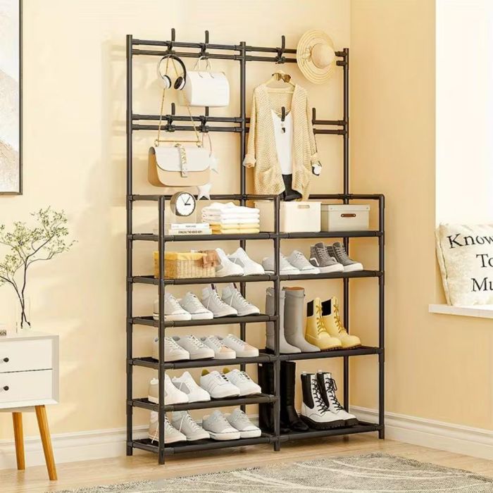 هل ما زلت تعاني من إيجاد مكان مناسب لأحذيتك وملابسك اليومية؟ رف أحذية أنيق بتصميم فريد يناسب معظم أنماط المنازل. سواء كان مدخل المنزل، أو غرفة النوم، أو غرفة التخزين، أو المكتب، سيكون هذا الرف مساعدًا مثاليًا لحياة منظمة ومرتبة