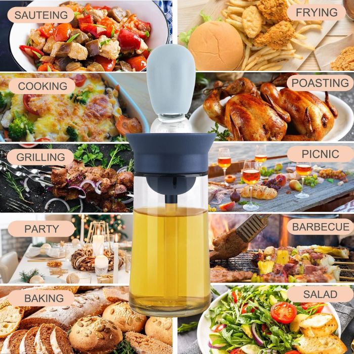 تحكّم في طهيك مع موزع الزيت 2 في 1 متعدد الوظائف. يتميز بزجاجة زجاجية آمنة غذائيًا، وقطارة سيليكون مدمجة، وفرشاة، مما يضمن قياسًا دقيقًا للزيت وتوزيعه بأقل قدر من الفوضى. مثالي للزيت والصلصات والشراب والتوابل، حيث يجعل تصميمه المريح سهل الاستخدام والتنظيف وإعادة الاستخدام. رفيق عملي في المطبخ للشواء والخبز والدهن، كما أنه هدية مميزة لعشاق الطبخ.