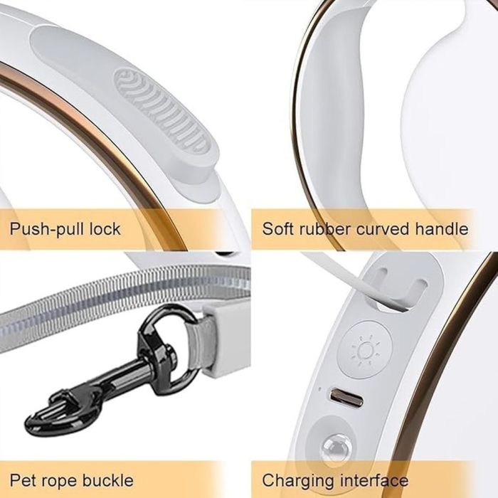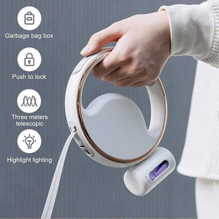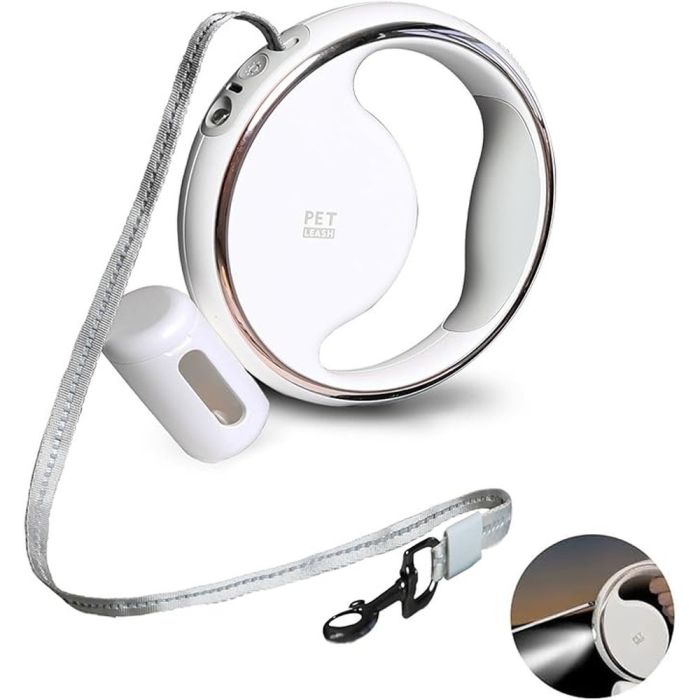 يوفر هذا المقود القابل للسحب بطول 3 متر تحكماً آمناً لحيوانك الأليف، مزوداً بمصباح LED لتعزيز الرؤية الليلية. تصميم مريح ومرفق بموزع أكياس مدمج يضمن لك الاستعداد الكامل لأي موقف خارجي.