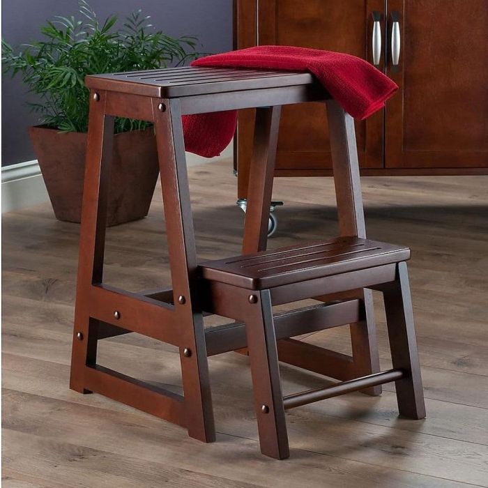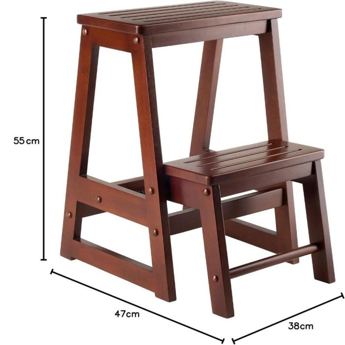 - مقعد خشبي وسلم مزدوج الدرج 2 في 1