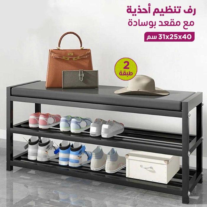 صفقة اليوم هي رف تنظيم أحذية 2 طبقة مع مقعد بوسادة