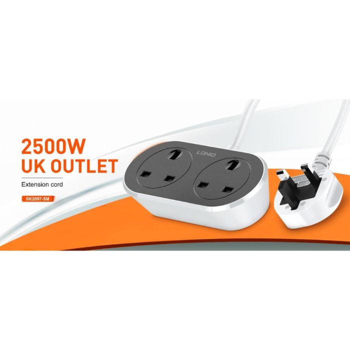 - وصلة اشتراك كهربائية 2 مخرج طول 5 متر 2500 واط من LDNIO